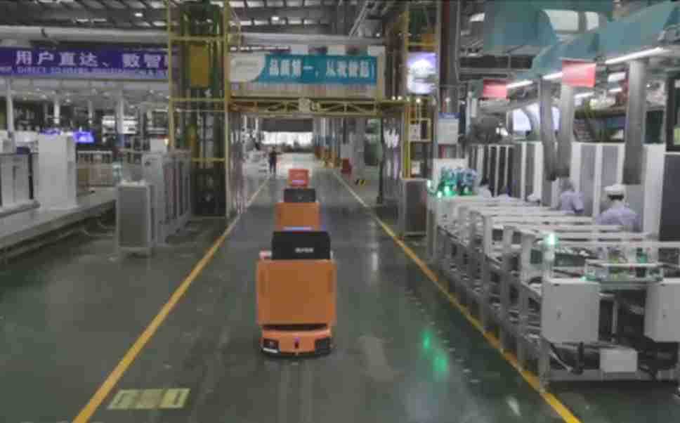 为车载冰箱物流配送打造的智能解决方案,,,包含产中物流通过潜伏举升AMR搬运至线边,,产后成品物流智能仓储,,,流程包含产中物流智能齐套入库,,,,线边安灯叫料AMR智能配送至线边,,,成品入库、、、、出库,,,通过无人堆高车机器人,,,智能仓储管理替代人工作业管理,,,实现更高存储、、更高效率、、更具柔性化的解决方案。。。